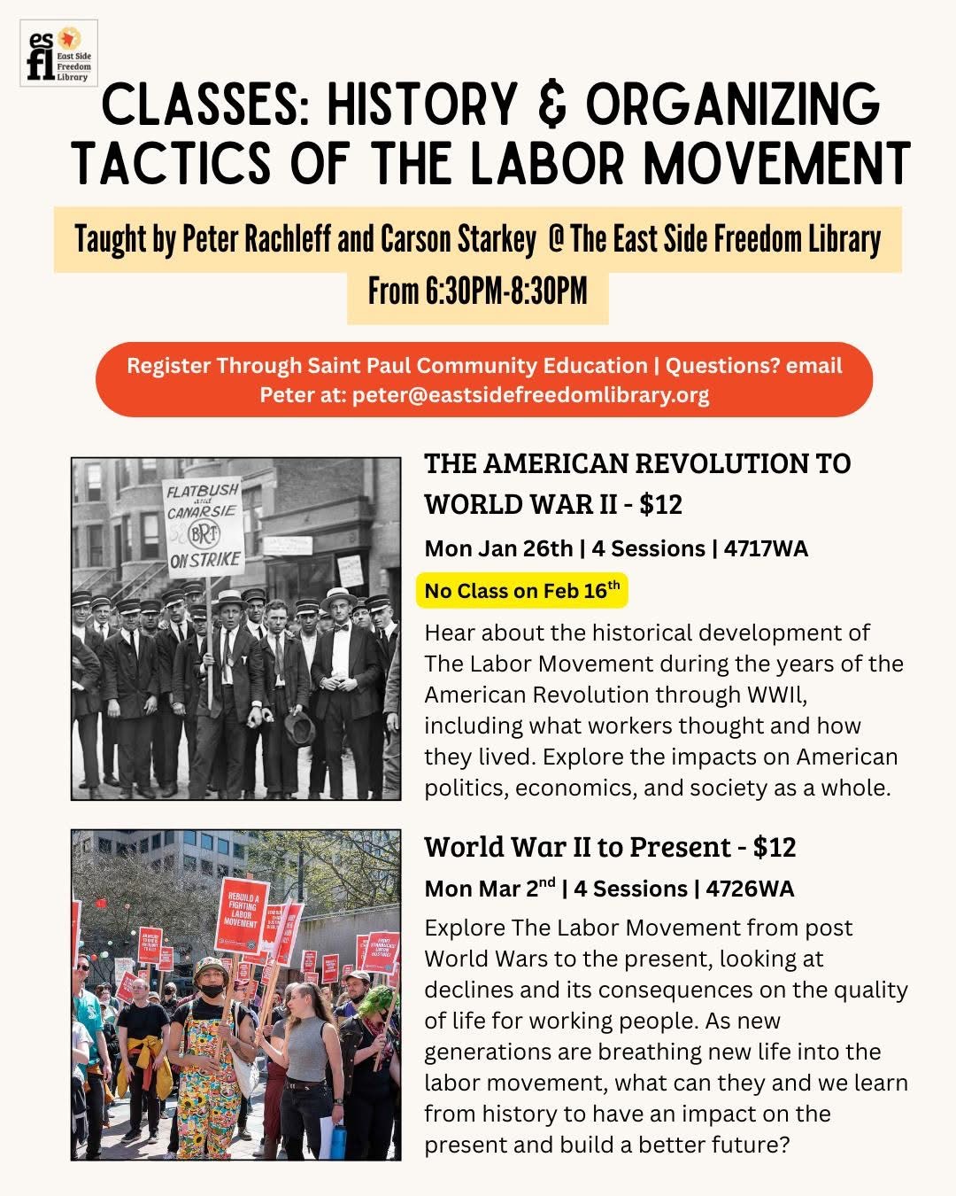 CLASSES: HISTORY & ORGANIZING TACTICS OF THE LABOR MOVEMENT Jan 26 CLASSES: HISTORY & ORGANIZING TACTICS OF THE LABOR MOVEMENT 6:30 pm - 8:30 pm