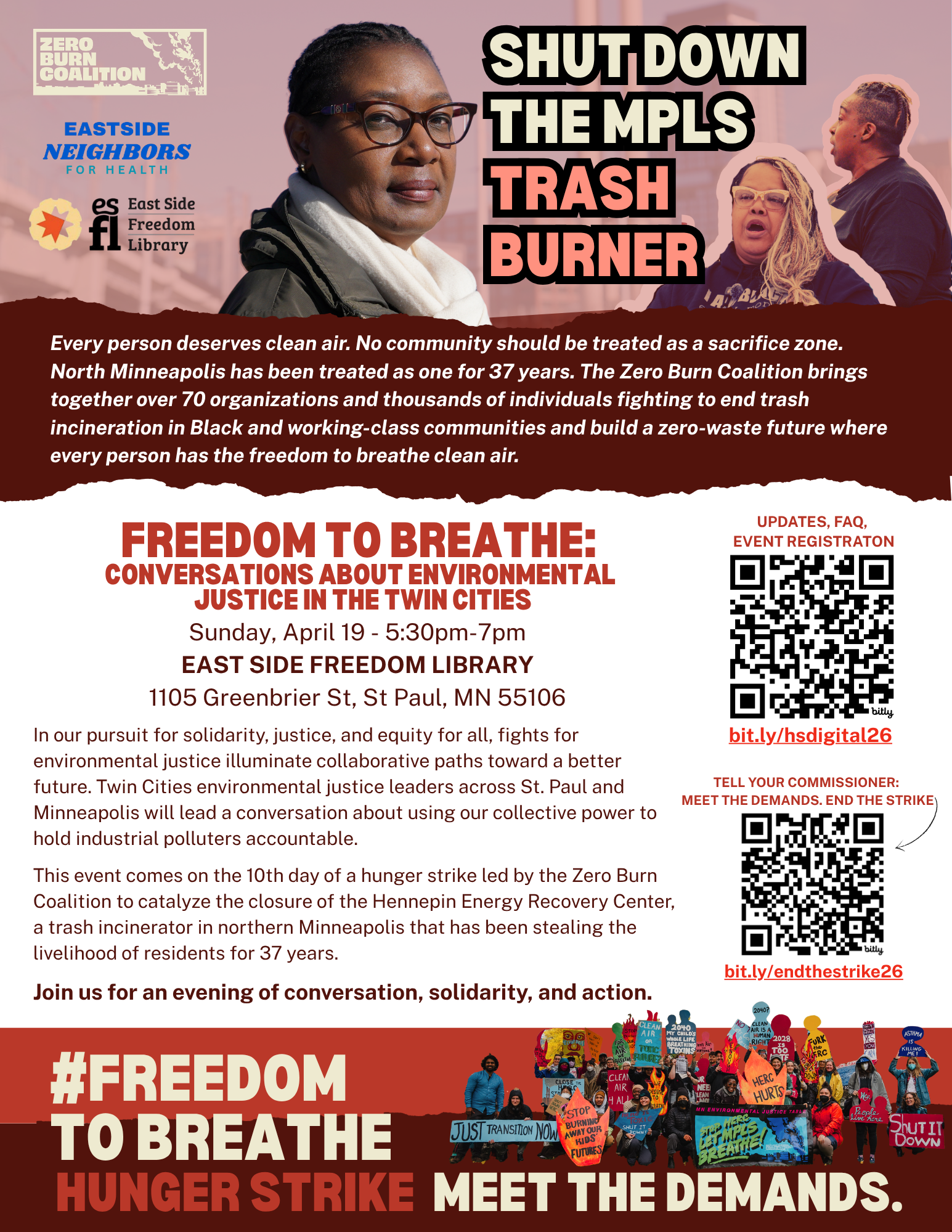 Freedom to Breathe: Conversations about Environmental Justice in the Twin Cities Apr 19 Freedom to Breathe: Conversations about Environmental Justice in the Twin Cities 5:30 pm - 7:00 pm