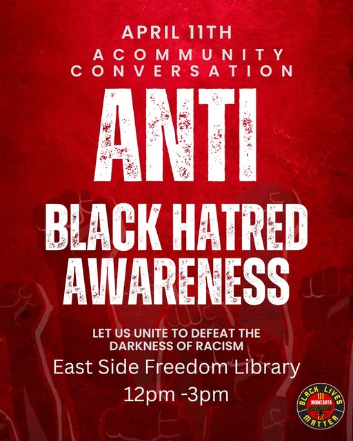A Community Conversation: Anti Black Hatred Awareness Apr 11 A Community Conversation: Anti Black Hatred Awareness 12:00 pm - 3:00 pm
